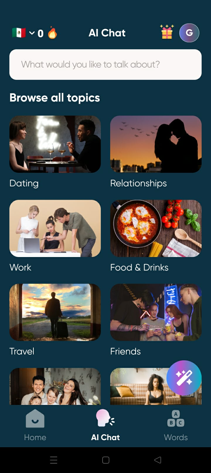 AI Tutoring is an intelligent chatbot that enables you to have fully dynamic, role-playing conversations in real-life scenarios. After the lesson, the AI Tutor will make an expert evaluation of your conversation, and offer accurate feedback & correction on your grammar, vocabulary, and overall language skills. It's like having a language tutor available to you 24/7, at a fraction of the price.